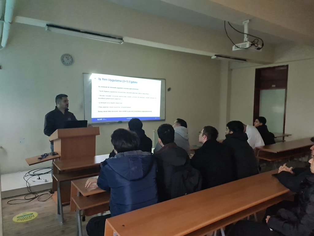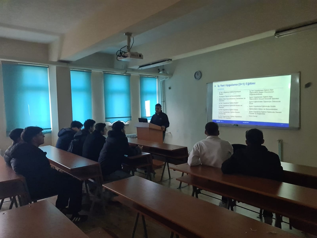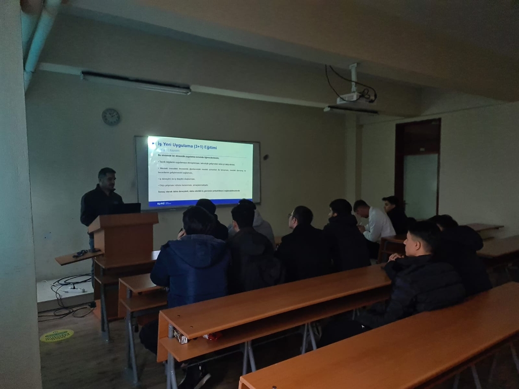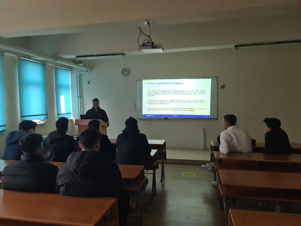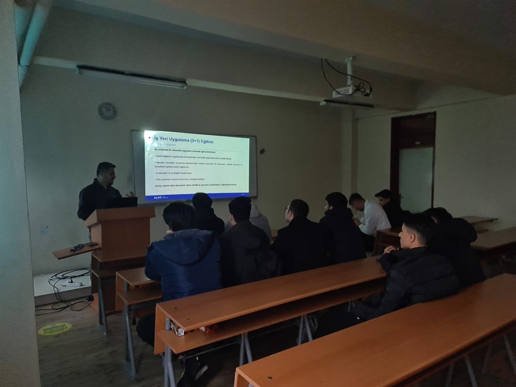 Bölümümüz öğretim elemanı ve İş Yeri Uygulama Eğitimi (3+1) Komisyonu üyesi Dr. Öğr. Üyesi Mehmet YURDERİ tarafından İş Yeri Uygulama Eğitimi'ne katılacak bölümümüz 2. sınıf öğrencilerine yönelik olarak bilgilendirme sunumu yapıldı.